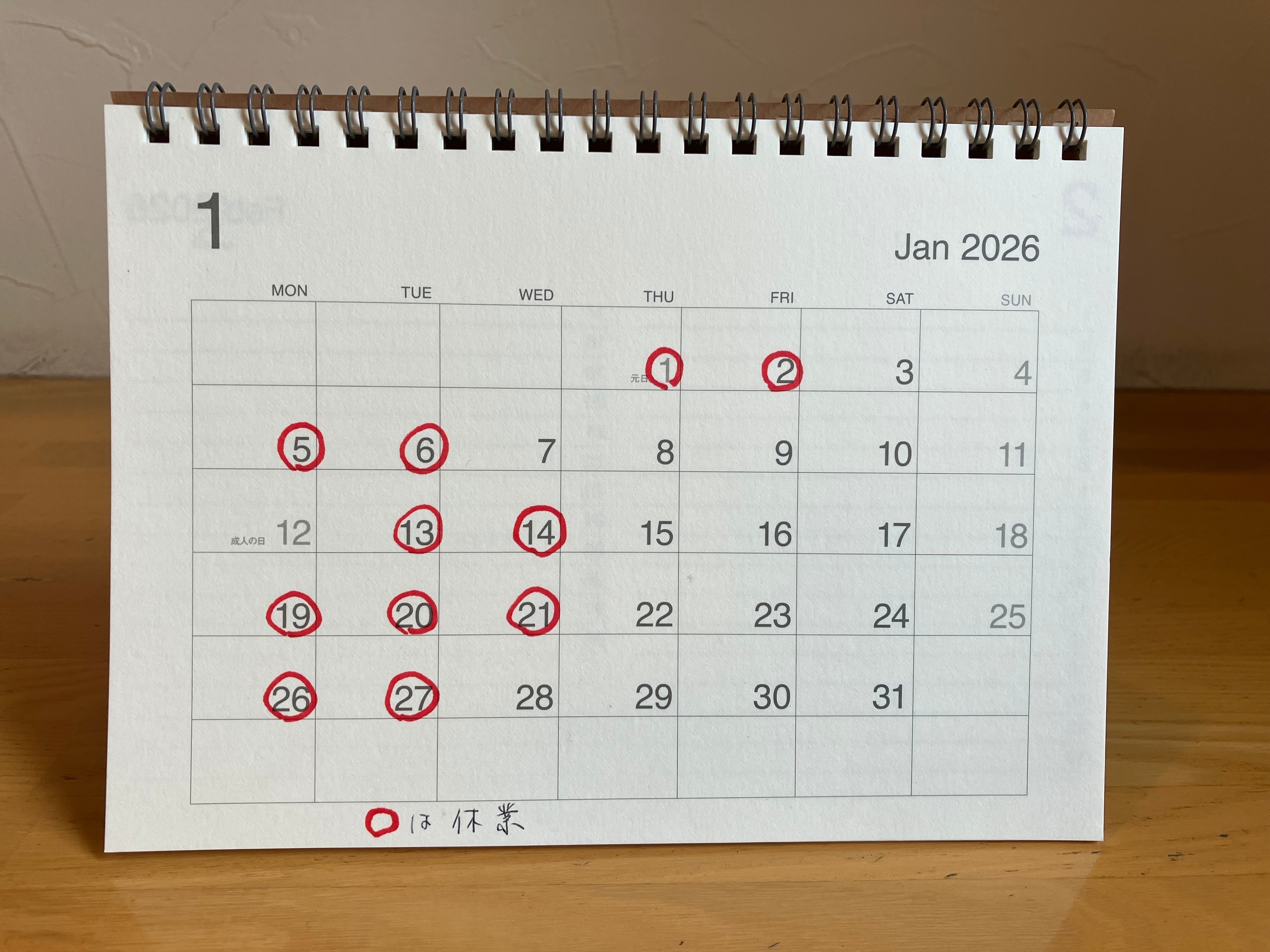 定休日は月曜日、火曜日です。